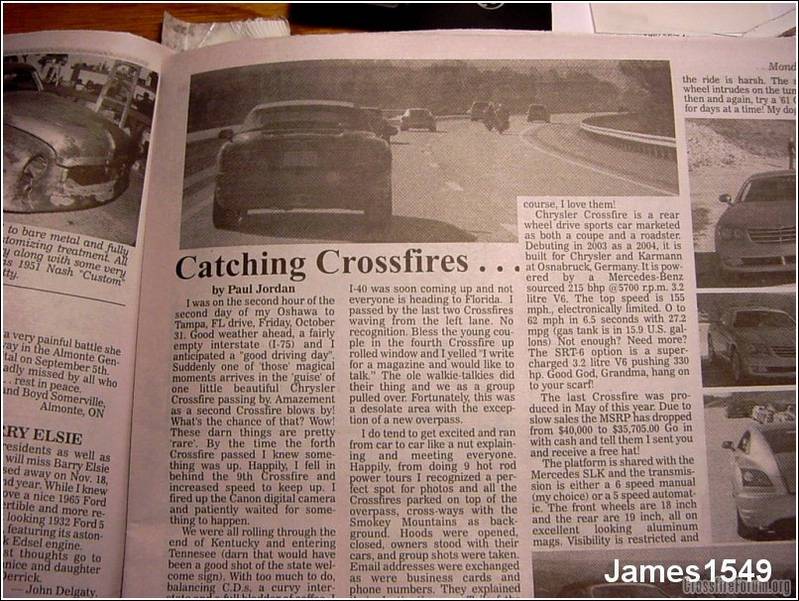 He took a lot of pics and is putting together a story about our Crossfires and our forum in a AUTO magazine.