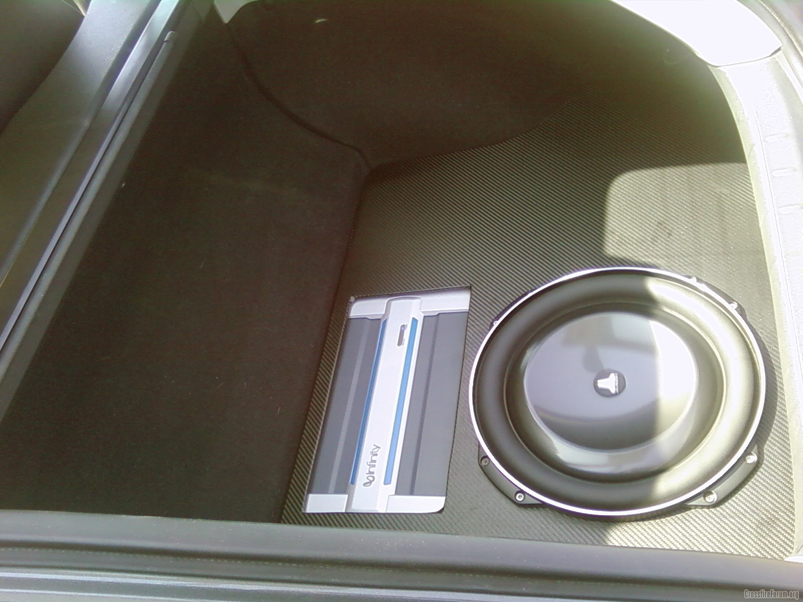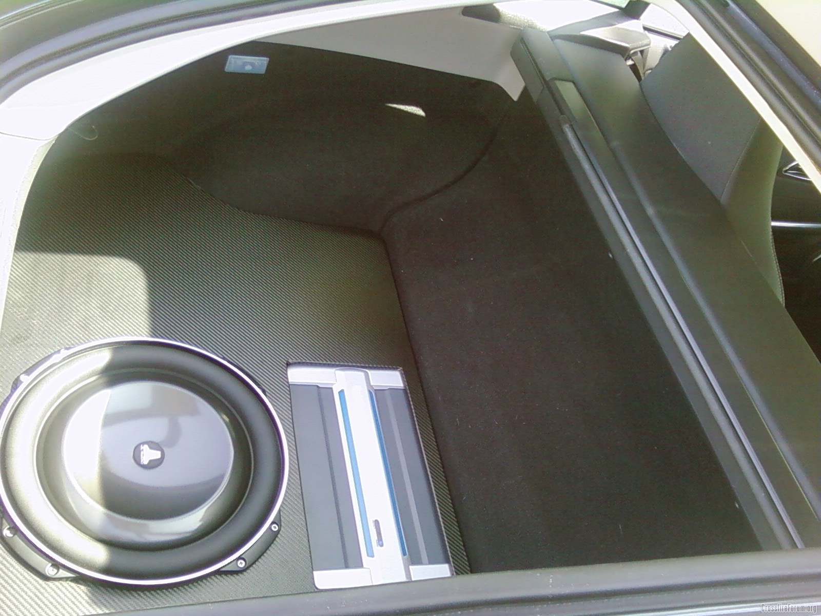 Ill take some night time pictures a little later tonight! Also will be making a cover to go over the system so I can still use the trunk when needed!