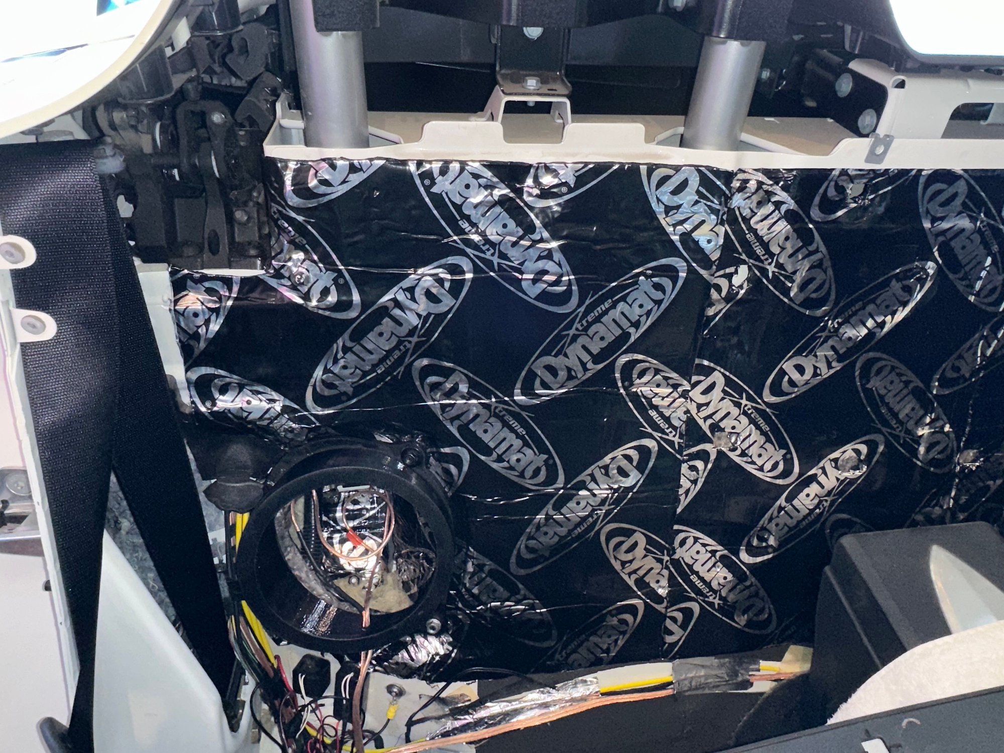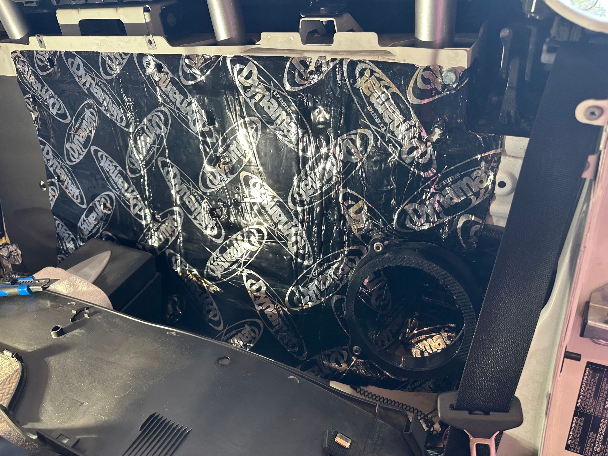 I started by applying Dynamat to the bulkhead and the interior of the sub cavity.