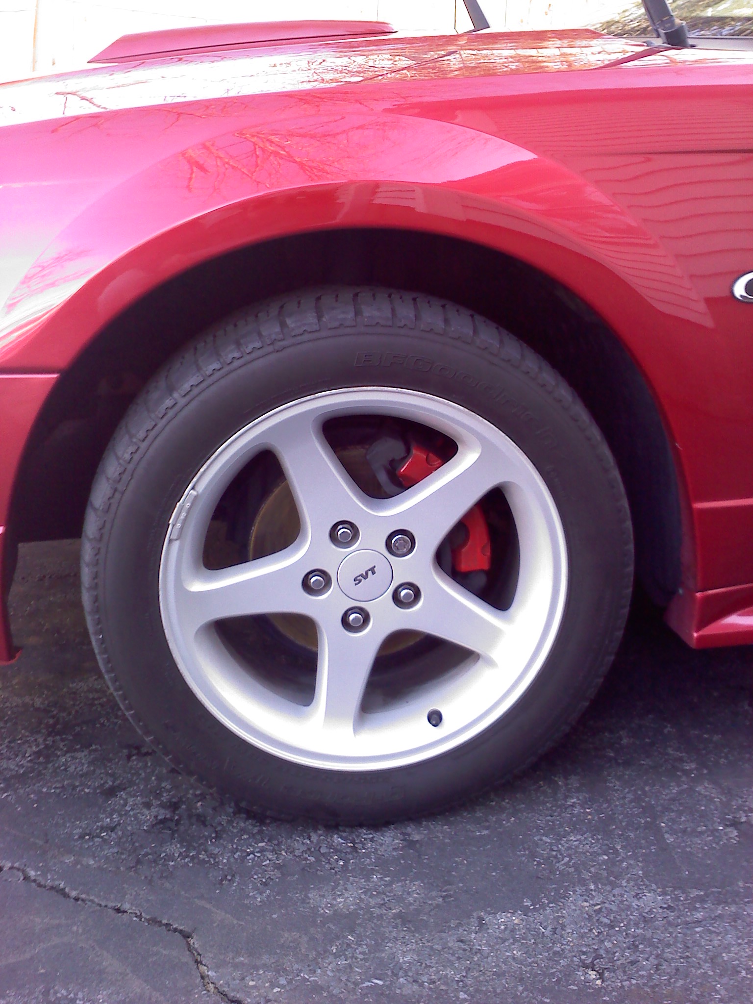 SVT 17x8 rims with BF Goodrich 255/45 tires all around.