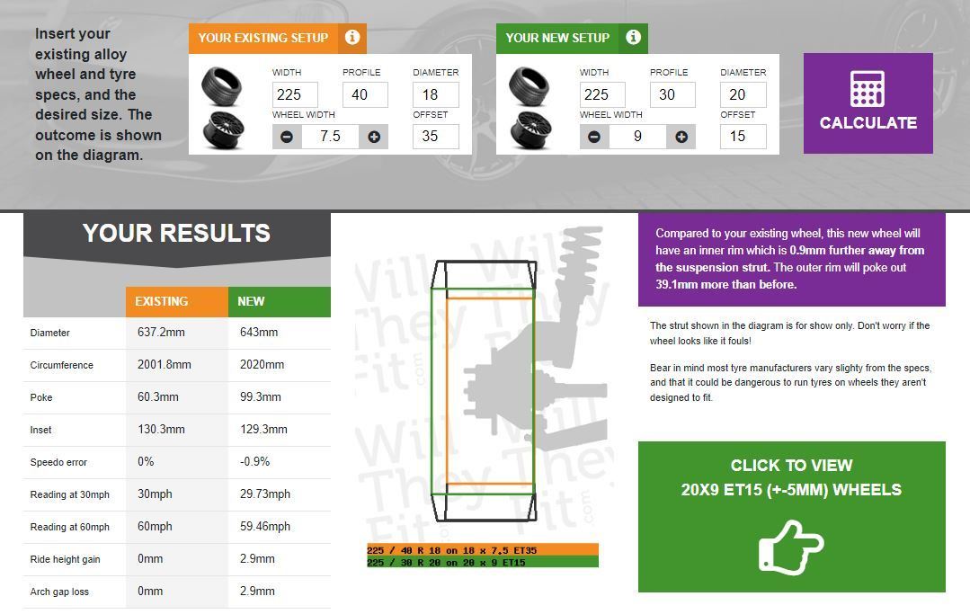 The new setup on the fronts show quite a bit of tire sticking out compared to OEM setup. I don't think I would use that but others more familiar with this hopefully will chime in.