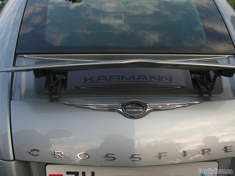 this is the decal i plan to place under the spoiler. it's only about 4" long and about 3/4" wide, but it will still be readable. although my car is gray, the yellow adds a little visibility and attention to actual maker of the vehicle. i received these decals after messaging the headquarters of karmann in osnabruck, germany. it came along with 2 karmann badges (pic below). i plan to place these badges on each side of my crossfire; however, i don't know where.