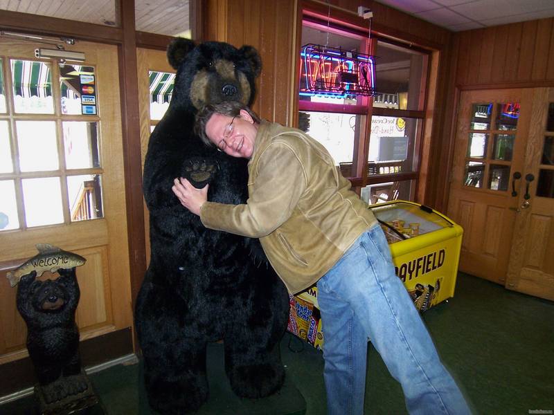 Jeff Cobb gives the bear a nice friendly hug.........