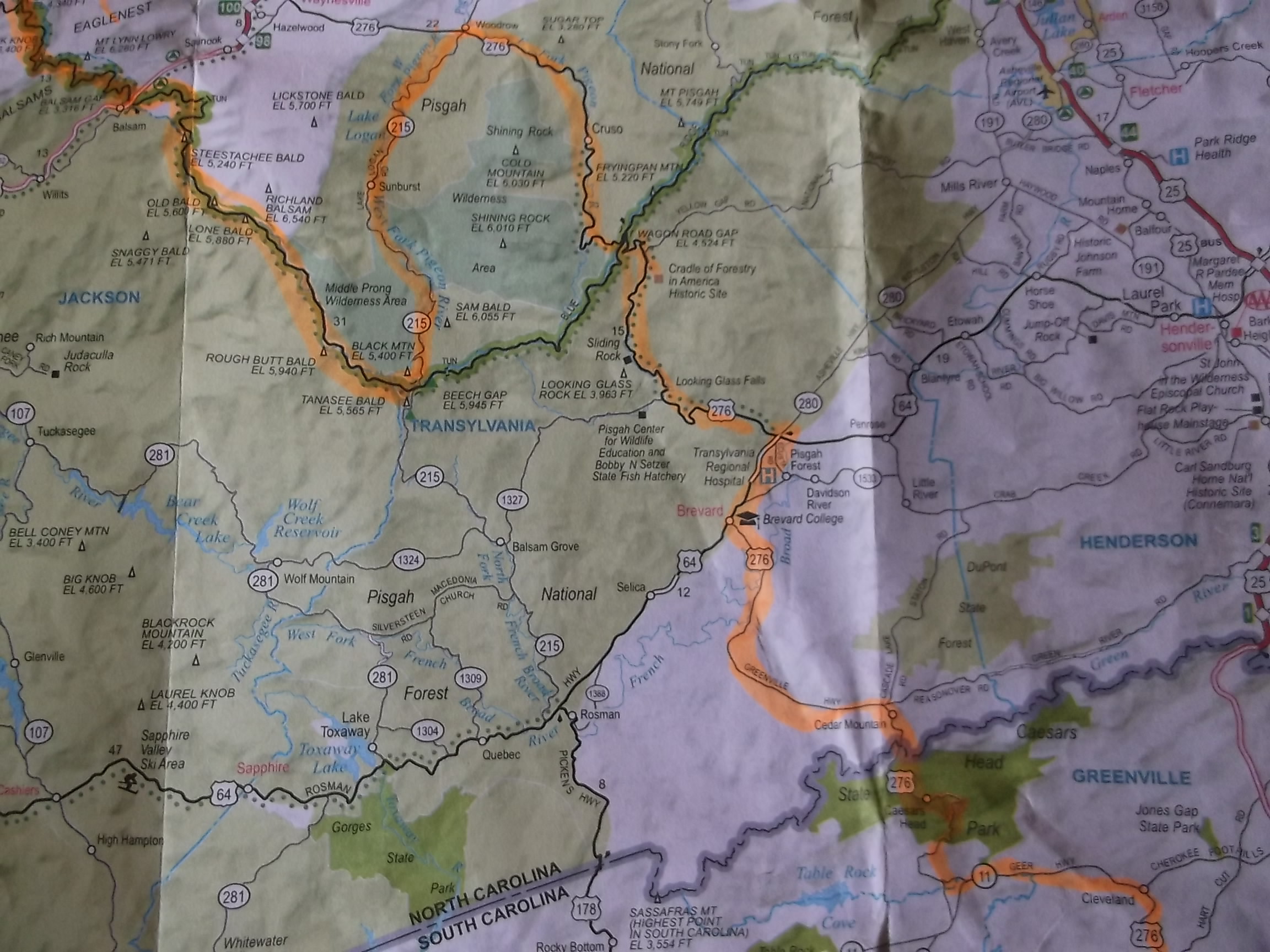 Picked up BRP Western Entrance above Cherokee, NC, then North on Rt 215- 215 is a very "twisty" road there, 25-30 mph is about as fast as one could go for a short time.. then picked up Rt 276 south, with variable kinds of road, including some twisties and mountain roads. Looking Glass Falls is right on rt 276, and crowded. Driving to Caesar Head park, SC is a nice curvy, climbing stretch. In Greenville, SC we picked up I-26, then I-95, with a short visit to a classmate in Amelia Island, Fl and on south to homes in Brevard County, Florida.