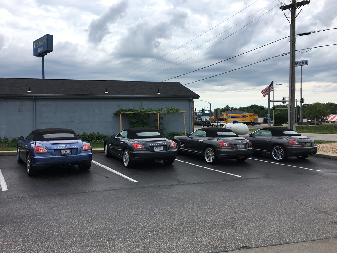 While in Paducah, we saw a Crossfire Coupe parked in a driveway close to the hotel we're staying at. Stopped & knocked on the door. Turns out the owner bought the 2005 Limited Coupe back in FEB with just over 100k on the ODO. His car is black and he had it detailed today. Car looked really good. We showed him our 2007 Limited Coupe and mentioned the Ozark Mtns event this coming week in Eureka Springs. Gave him info on the Forum and told him to login & begin looking around to learn all things about the car.