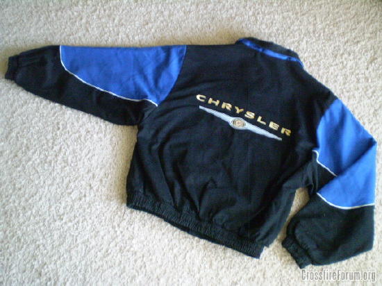 Allen and I have the same jacket Gary does.But we paid $6.99 last year.They are nice jackets and they have the Chrysler logo on the inside tag. So we took and had them embroidered and the cost was only $5.00 for each for the car logo and the word crossfire.So we have really nothing in the jackets.We did get new dash mat for the crossfire off e-bay and also had it embroidered.I did not know the company Dashmat made them for the crossfire.I am a happy camper.