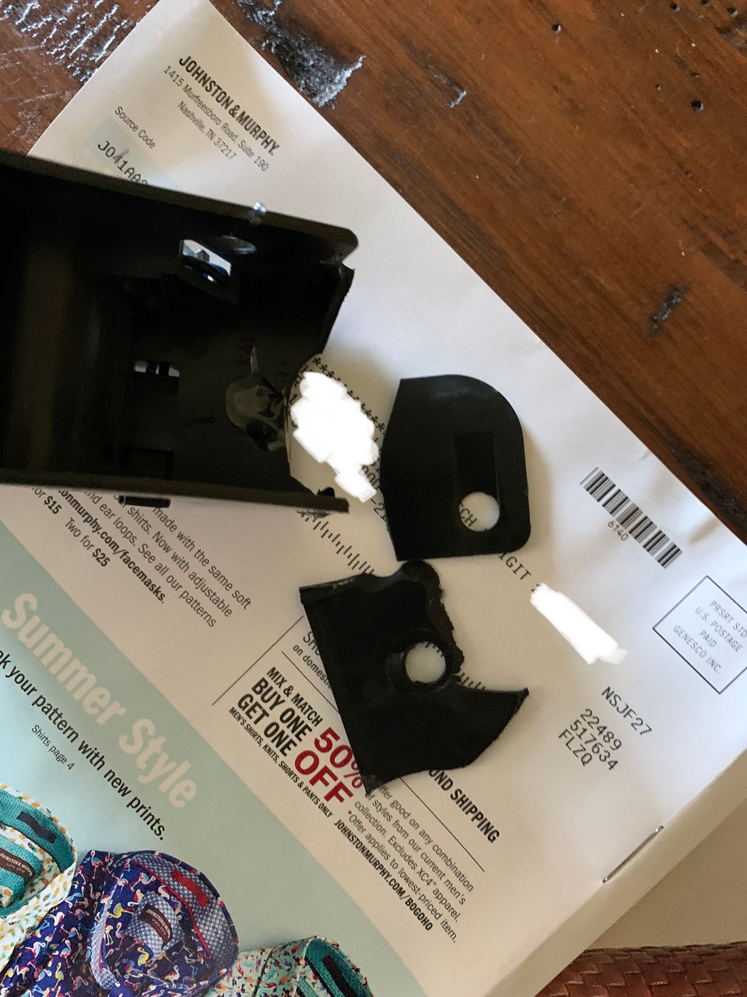 GREAT WRITE UP BTW and thanks in advance. Broken piece and internal spring You'll notice one of the channels this trigger rides in is also damaged by the way it's cockeyed.