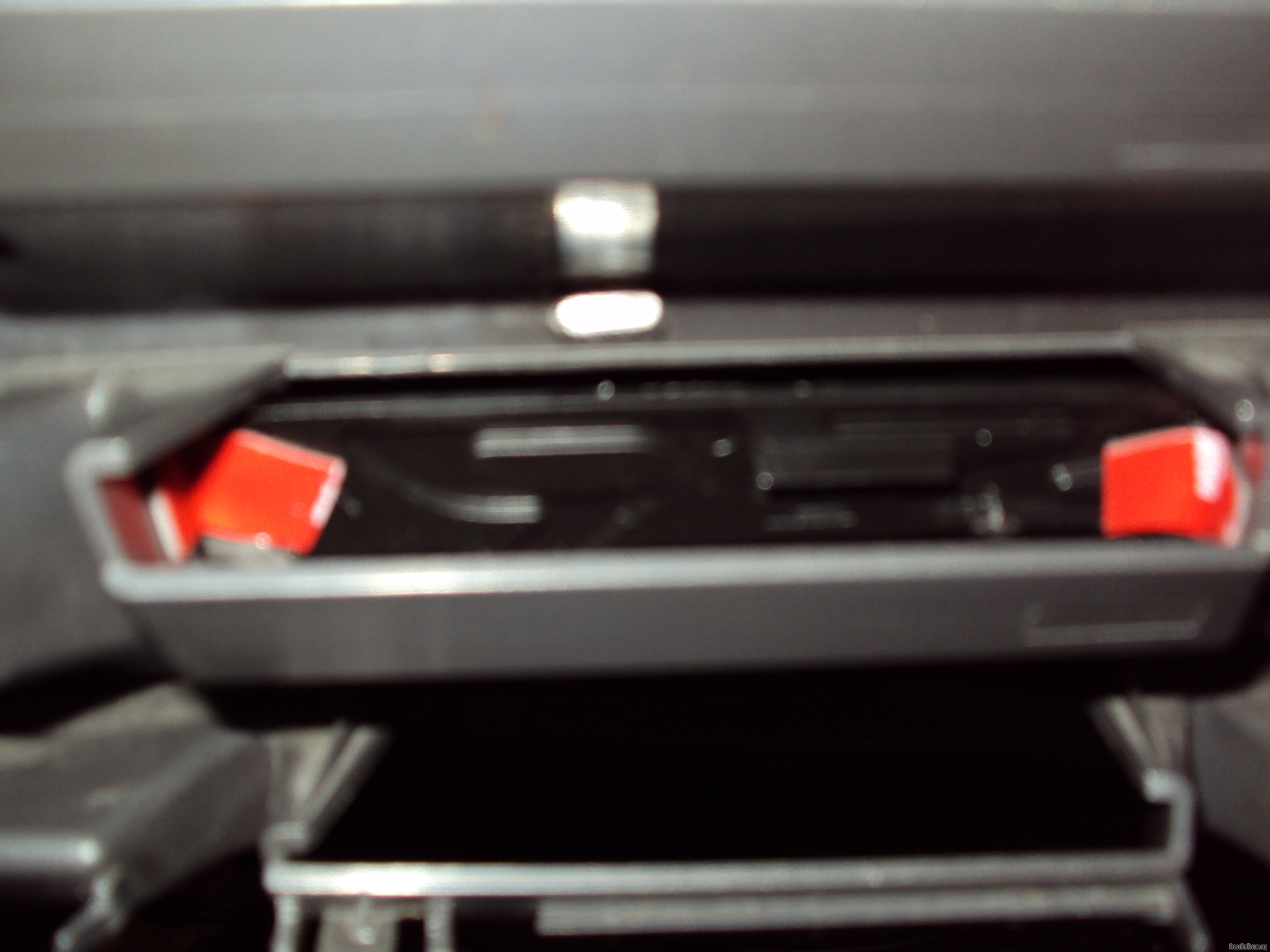 6. Adhere some of the 3M double sided foam super strength auto molding tape (Wal-Mart, Advance, etc. has it) to the back of the emblem where it will mount to the slats. Hold some firm pressure on it for a good while. I used little pressure clamps.