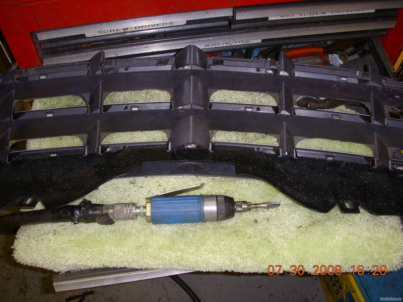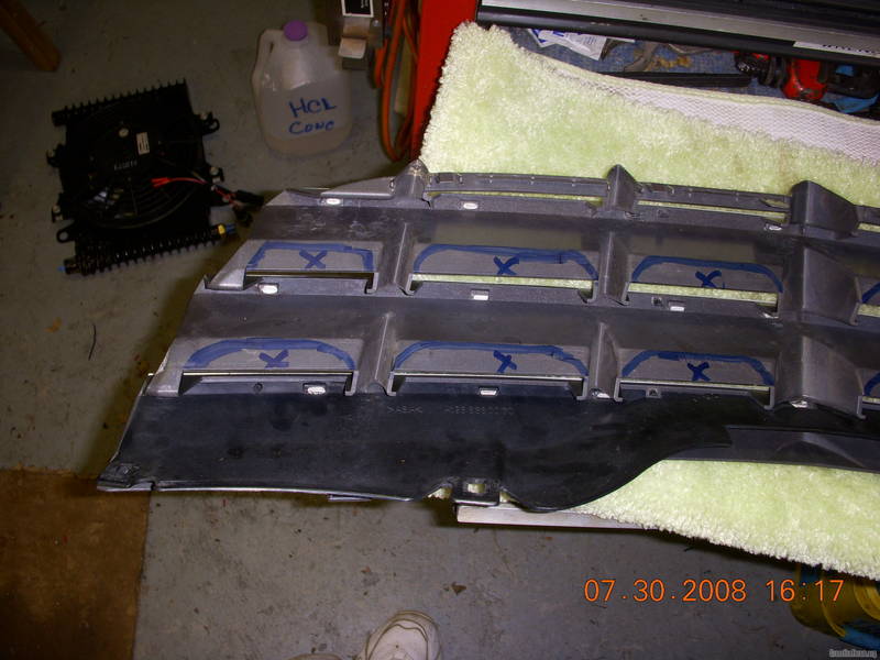 *** I wanted to remove the back area of the grill but being OD SCHOO I have done this stuff a long time. I know that the plastic should be cut with a ROUND SOFT RADIUSED SHAPE to eliminate stress risers, cracking, or weaking of the grill material. This is why I drew lines on the backside to guide me so that I didnt get too close, cause cutting has a way of getting away from you QUICK if you dont watch out..