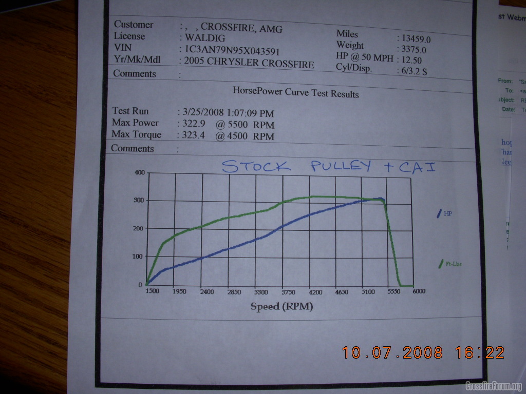 Well we disagree Brian. The SC is running all the time, I wanted to pull the camera out of the back to show you and I even painted my pulley with you in mind. The camera was monitoring the intercooler temperature meters and the intake air pressure and I needed to capture that data.