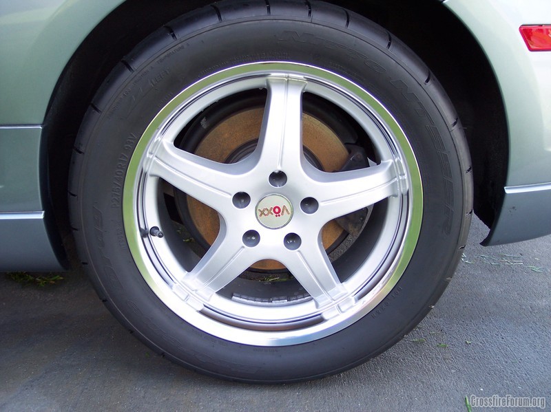 Well I got tired of rolling on miss matched wheels, so I found a set of matching 18's. They are made by ADR 18x8.5 35mmET and 18x9.5 25mmET. Sold my VOXX wheels and Hoosiers. I will be running Mickey Thompson ET Street radials, 265/40/18. I would have had everything on this weekend but a shipping mixup shot that down, so maybe next weekend.