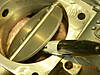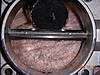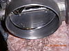 Just cut a 1/8” wide taper on both sides –top and bottom – of the front edge of the butterfly. Do not change the plate diameter, the thickness of the plate is left about 1/3 of its original thickness and is rounded, see the close-up photos. That edge is the one that faces the inlet wye or elbow. I used sandpaper to smooth the front edge and then played with mother’s aluminum – mag polish to shine it up for the squirrel factor in me……. You do not need to touch the rear edge of the plate, its down wind. I also dressed up the long threads of the two anchor screws to smooth them up a bit.
