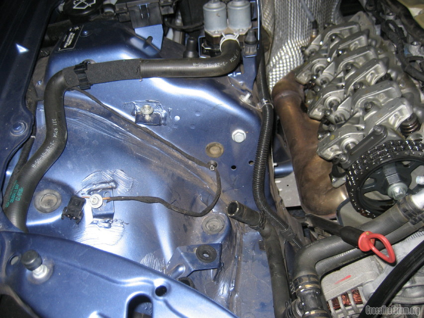 I would also suggest pulling away from the side of the car to help accomodate the angle that the barb enters the rubber grommet at the bottom. Doing this significantly helped me when I was doing my HID install.