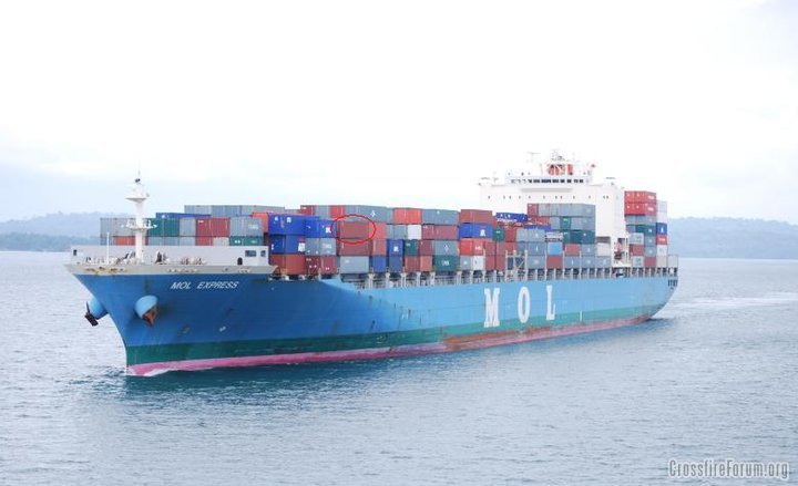 The pic you posted with the circled container is a stock photo of the ship in Panama. This very photo is obtainable on the very site you posted for tracking.