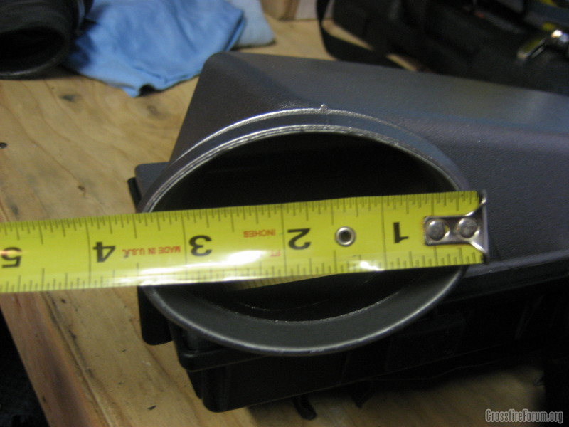 the factory opening has a trap door that is very restrictive and has to be removed. this gives you the 2 3/4 on driver side and 3" on the pass side. the plastic ribbed tube also disturbs the airflow