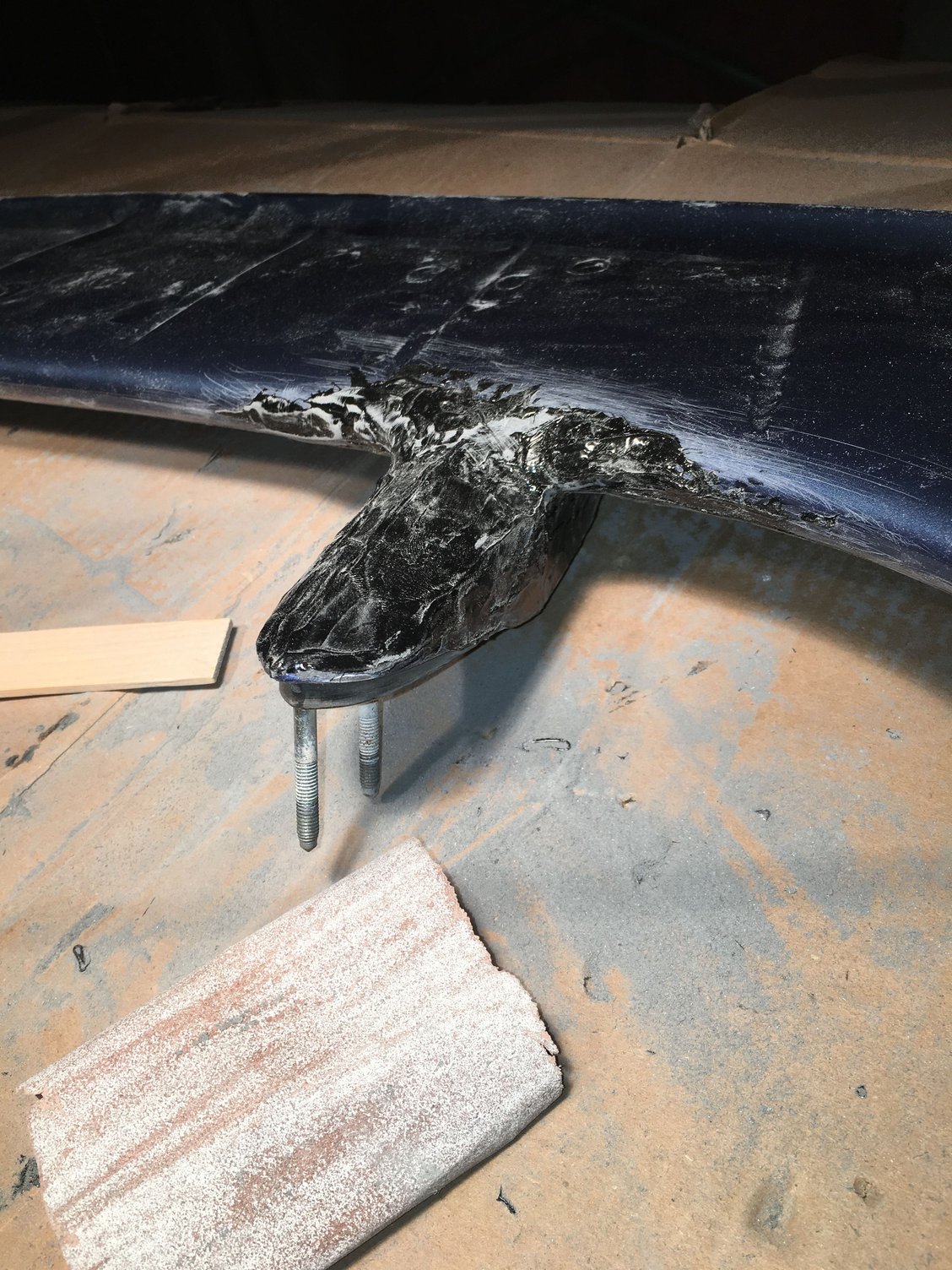 I wanted to give the adhesive a lot of space to bond. Mission accomplished. This is day one. I’ll have to apply several more round of adhesive to build up the support and attachment to the wing before I lay on the carbon fibre.