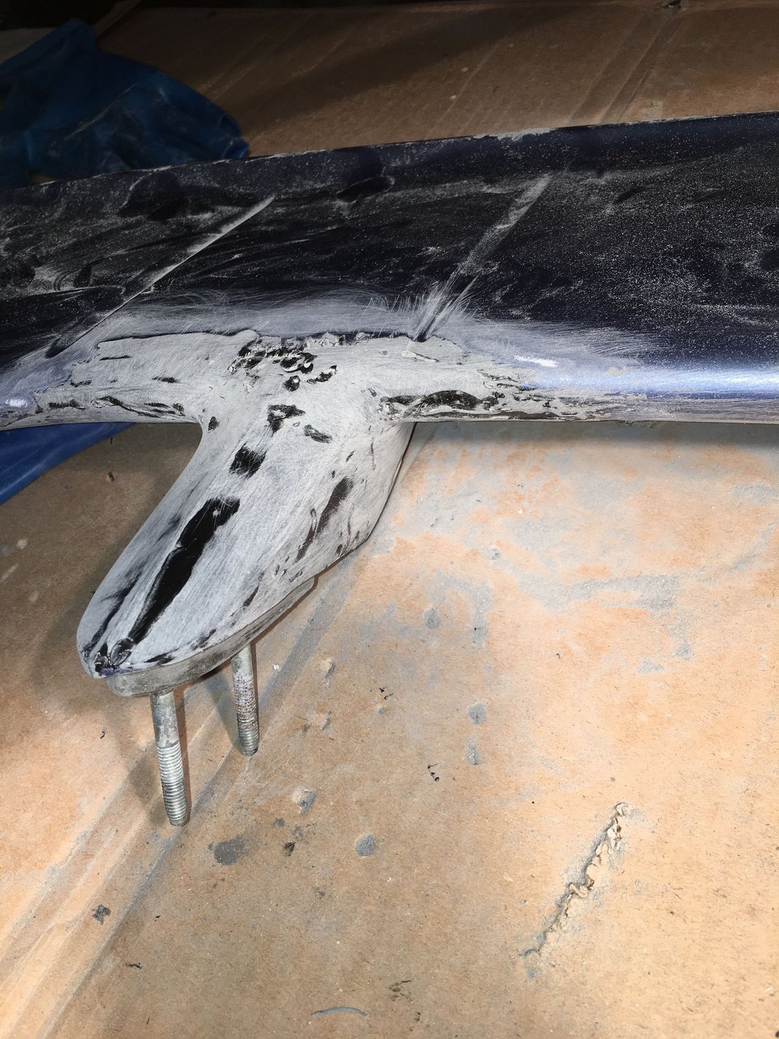 Both sides shaped. Filling in and building up a few low spots with glazing putty (i’ll Require a few applications of Putty. 24 hour drying time) before I apply the carbon. I want the base to be perfect so that I don’t get any air pockets between the wing and the carbon.