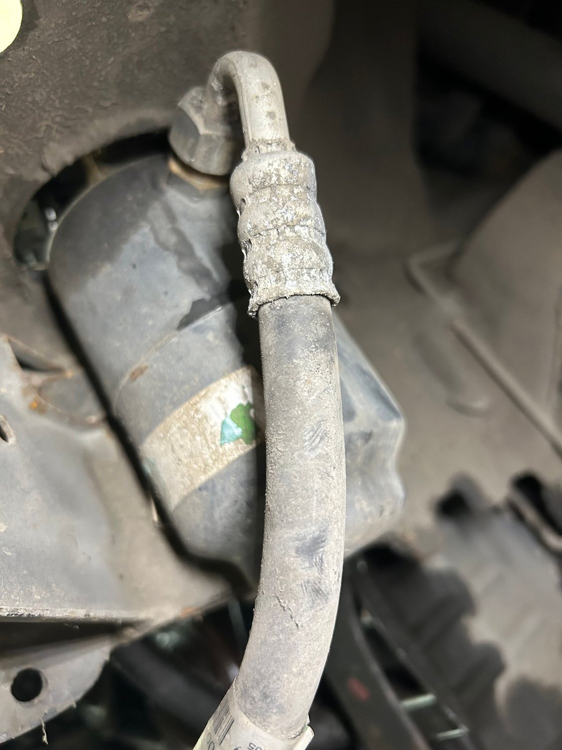 2. Those transmission lines at the front of the car where they go around the radiator and then up to the attachment banjo fittings are definitely bent.