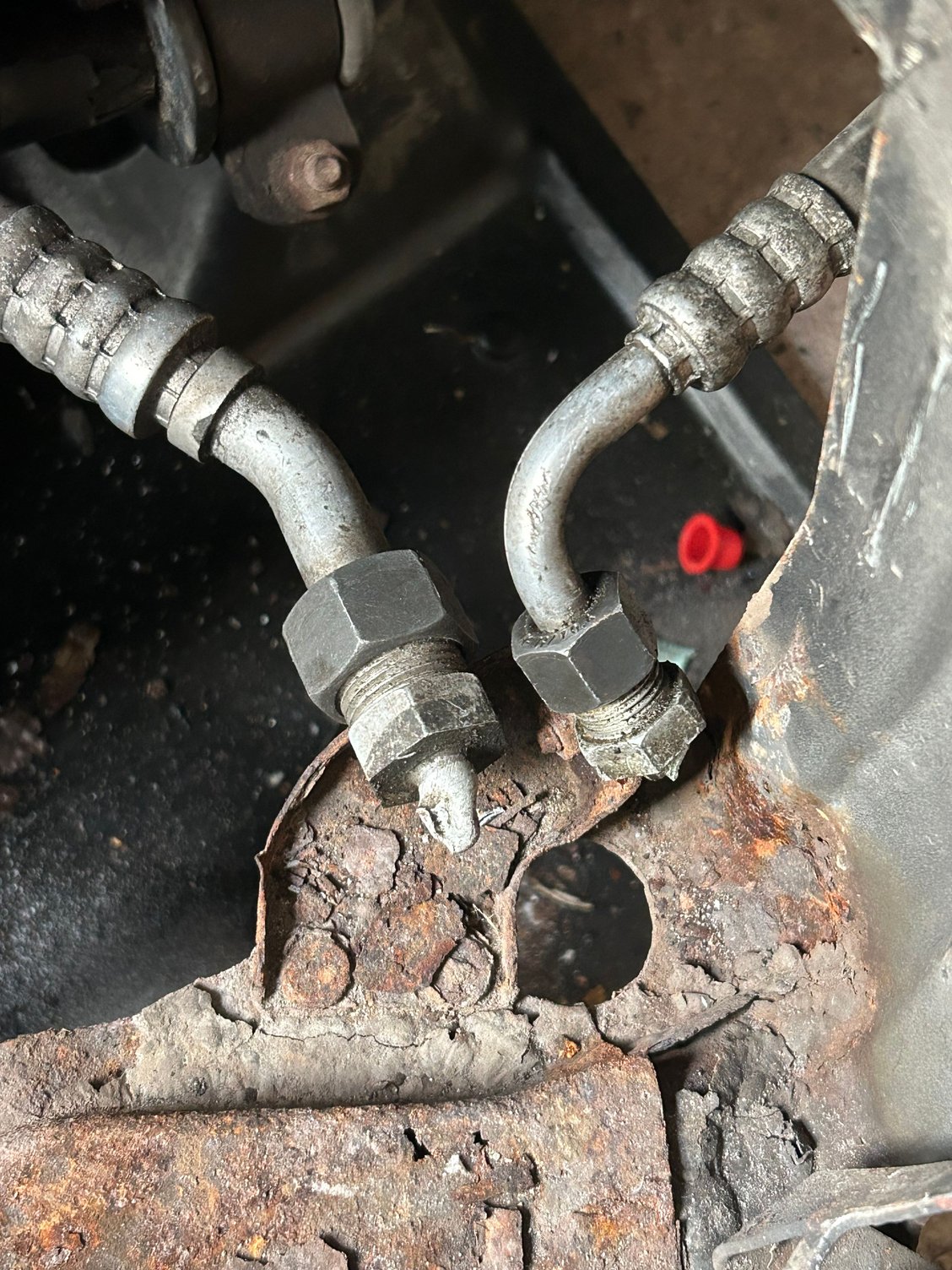 With the cooler lines, I've got one attached now, seems like I broke off the copper pipe in the correct places before, so just needed to undo the end fitting, first one was tough but managed it, second bigger one is not budging, guess i'll have to spray something on there to help loosen.