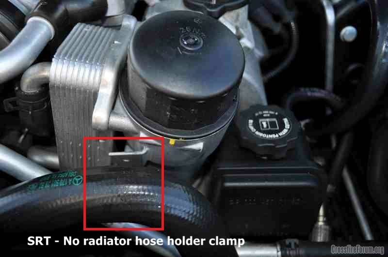 The SRT has a slightly different oil filter housing than the N/A to hold a clamp to secure the radiator hose.