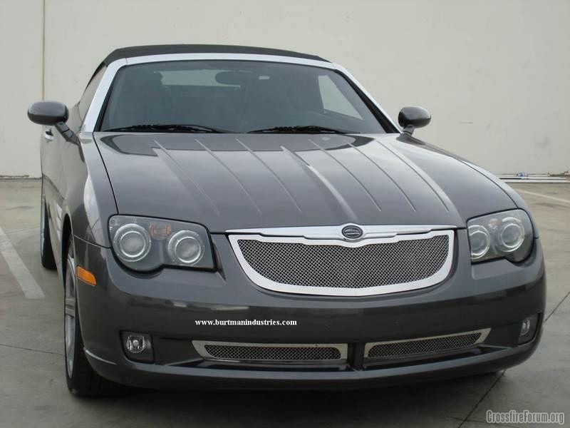 I've read that the problem with an after market grill that looks like the Bentley grill's is that there is no opening to let your hand through (unless you sunk the grill back and didn't keep it flush with the front, which looks weird, IMO, when its sunk bank a couple inches) to get to the latch to lift the hood up. So i was taking a break from work and i was looking at an eclipse and i saw it had HOOD PINS. And that seemed like a solution to the problem. Remove the latch mechanism and still hood pins above the lights (keep them inline with the turn signals or something to look good). So you can get the after market grill AND some hood pins to make your crossfire look better. =]
