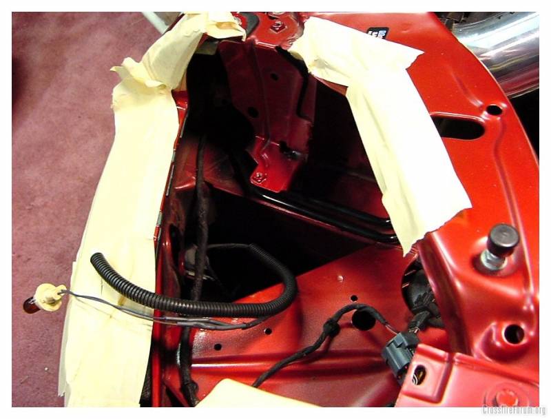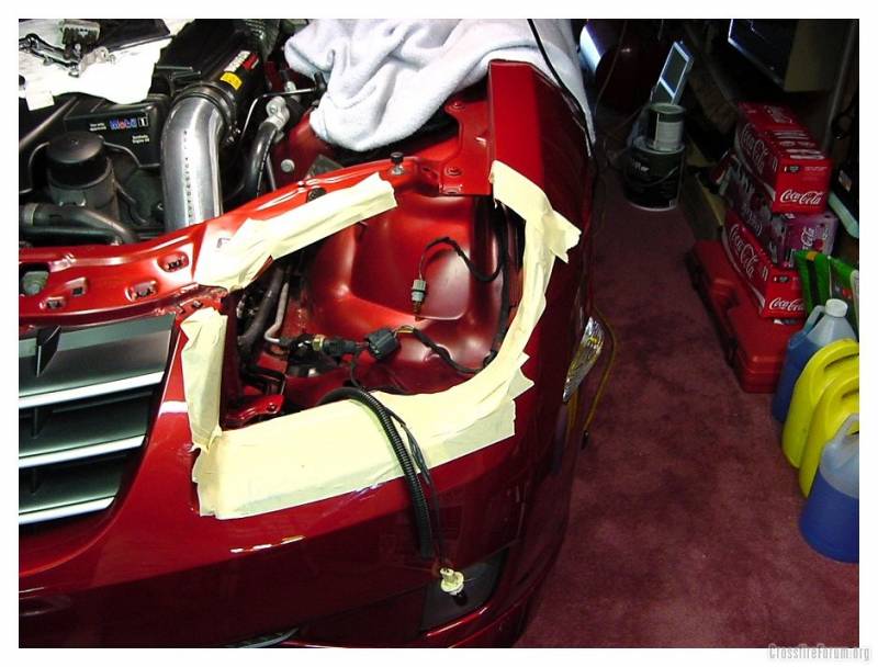 Also with the grille out, you can remove the bottom inboard bolts really easy. The outboard bottom bolt can be seen through the side marker hole, but accessed through the fog light door in the wheel housing.