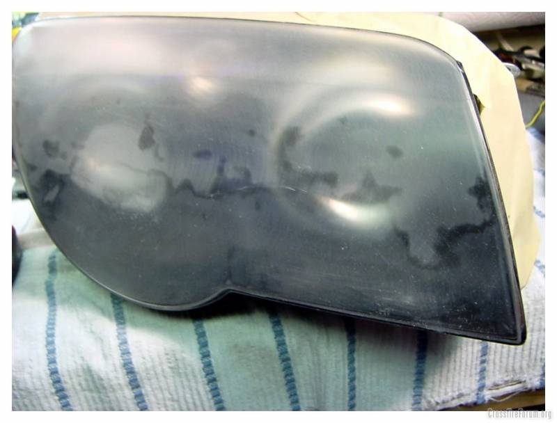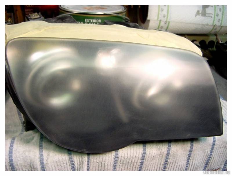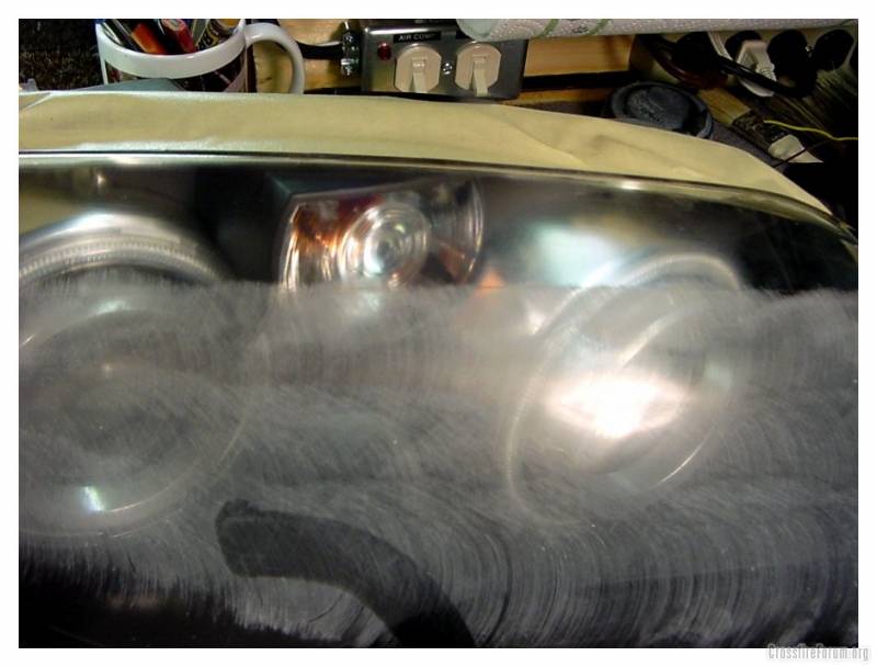 At this point, I realized it would take more than the first grit pad to get the job finished. So I hand sanded the rest of the lens with a Scotch Brite Pad. Worked very effective, then finished off the first step with appropriate pad.