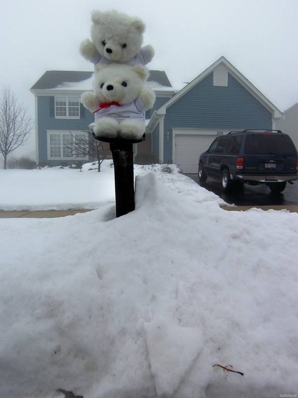 Well the bears still have not arrived. They missed the super bowl party this afternoon and the snowstorm that struck Chicago again this evening. Still waiting.....
