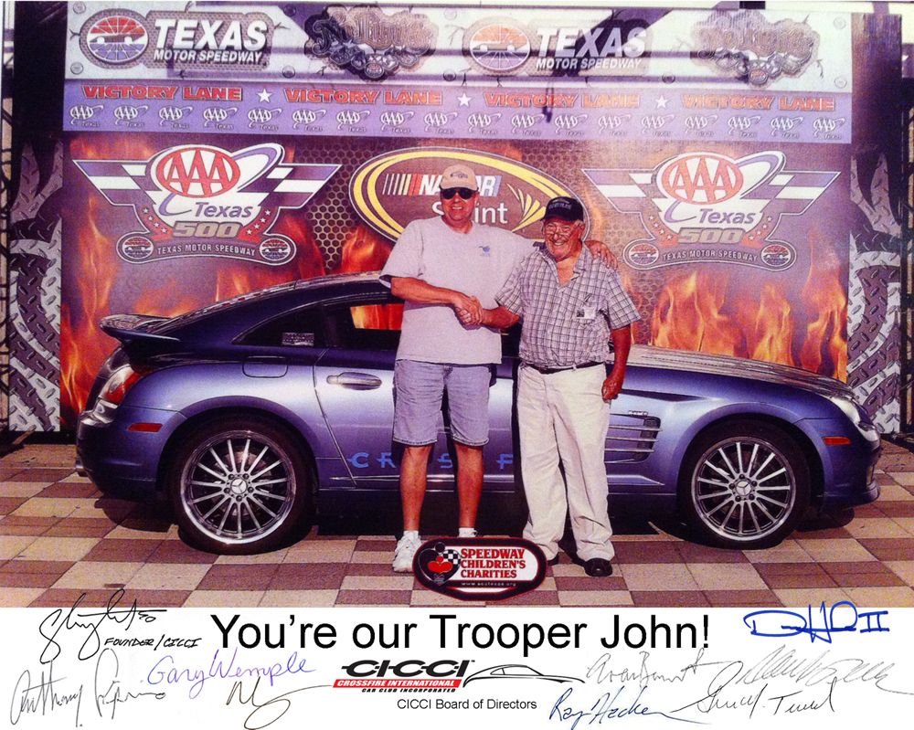 On behalf of the Family, I would like to thank you all for the comments made about this wonderful man, my friend. John was laid to rest yesterday with, well deserved, full military honors. I followed the hearse in Johns beloved Crossfire, also followed by Bill F in his Black coupe. Unfortunately due to the hastened funeral, it was not possible to gather more Crossfires, Thanks again. God Bless John, the angels have you now.