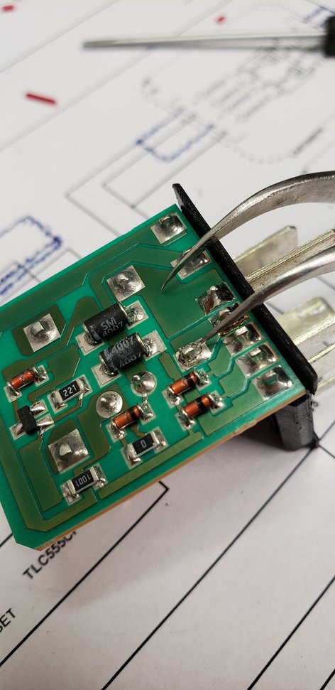Here is a pic of the cold solder joint for the fun of it (pointed out by the tweezer):