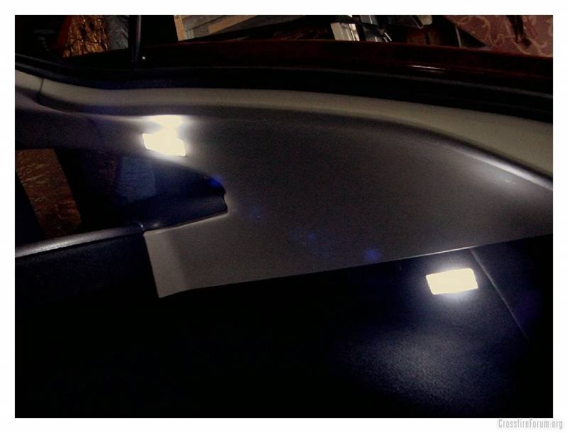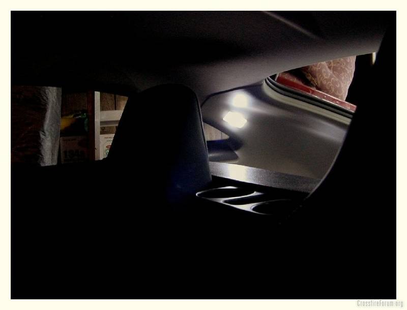 So I purchased two more OEM lights from the dealer and mounted them as high as you can get them in the quarter trim. It turned out just as I had planned. But I warn you that it is one BIG PAIN to get those 1/4 trim panels back in properly. Probably the worst time I have ever had working on the Crossfire.