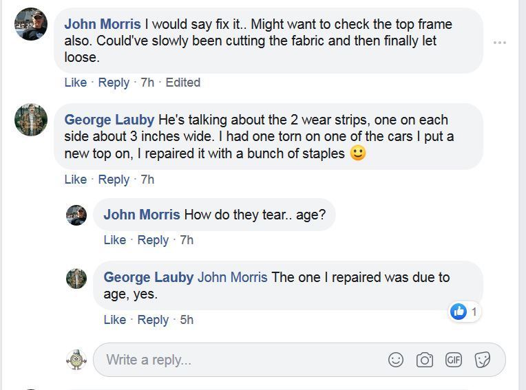 Yesterday both of the fabric strips that run along the inside liner have become detached from the inside front edge of the convertible top. Is this an important item to repair? If important to repair I could glue the top edge to the inside edge of the convertible top header. Has anyone had any success of securing this to the convertible top header?