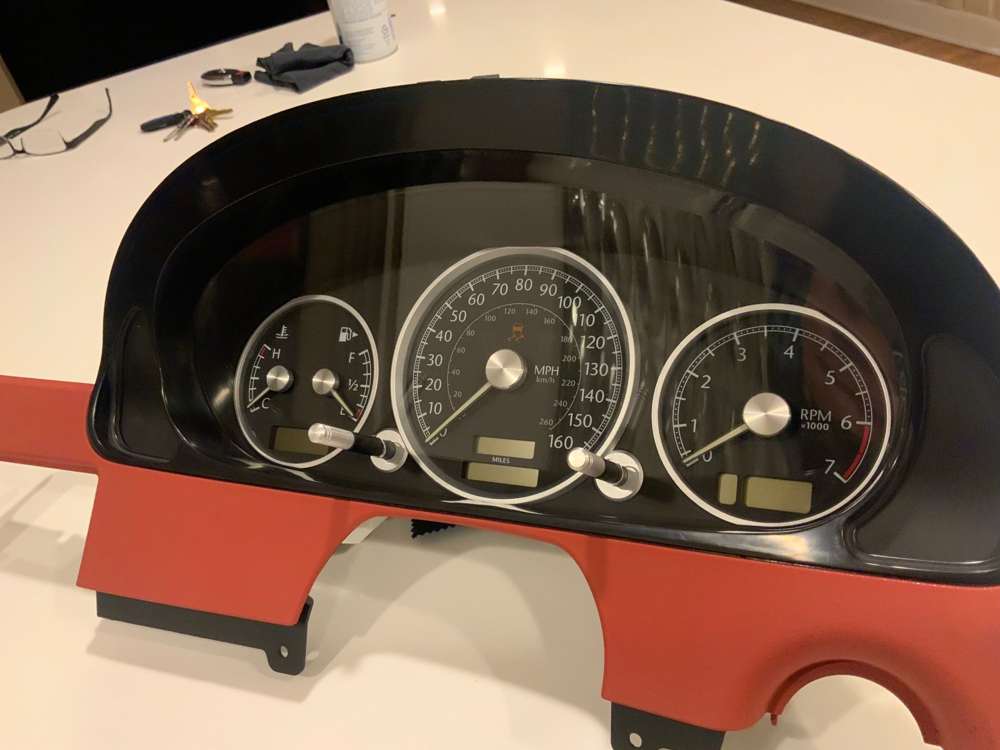 1. Removed dumb rubber coating around gauge bezel, still needs polishing.