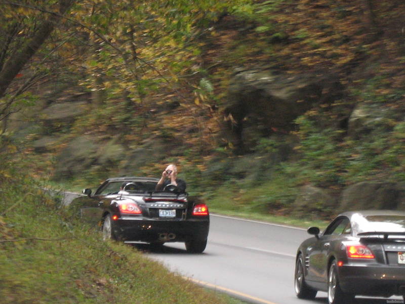 Ah, what a great day, Greg and Theresa with their red roadster were in my rear view mirror hanging in tight. If it weren't for the silver trim around the window I would not have even known the Erzer wasn't the one behind me all day.