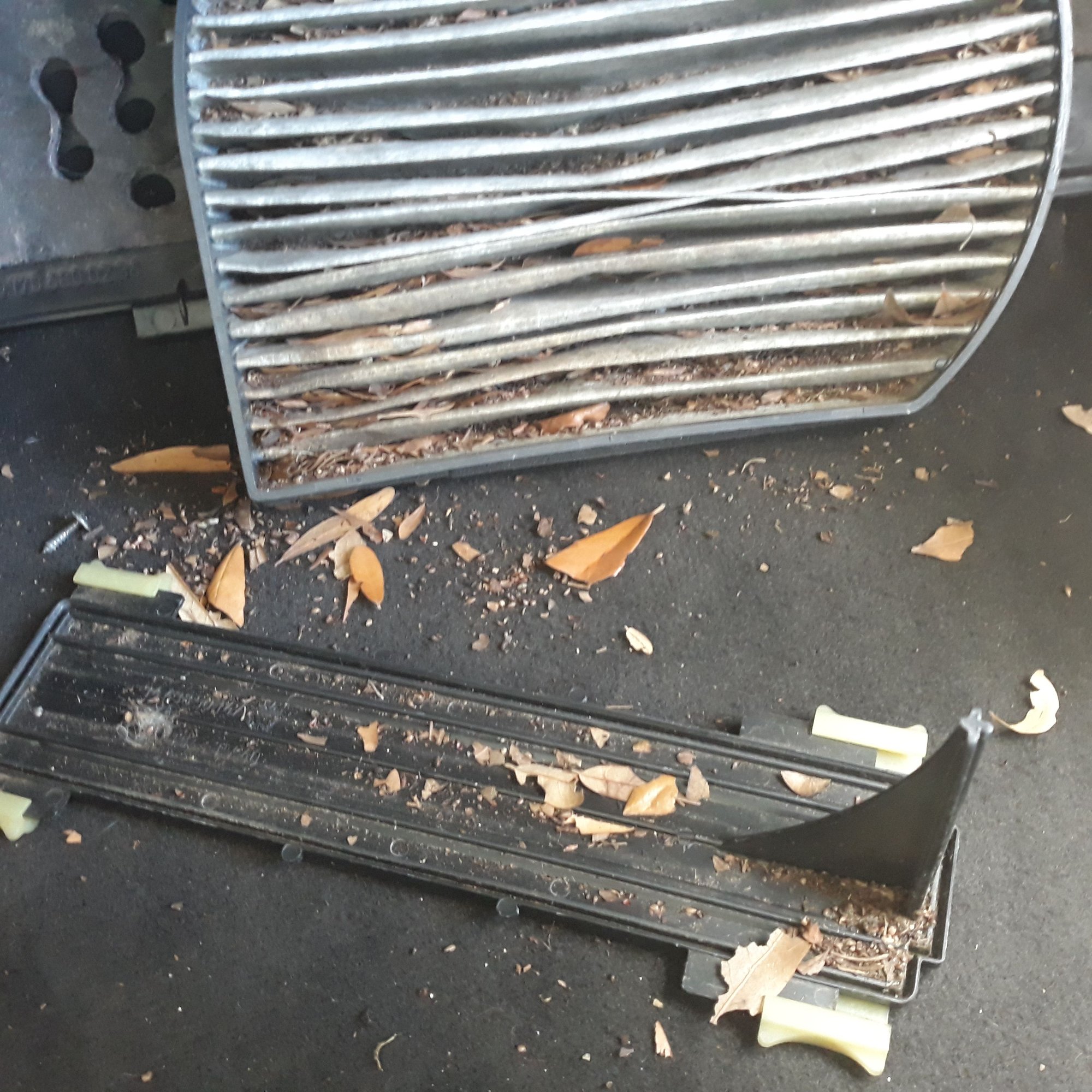 I had the same problem with my cabin filter. I noticed i didn't have much blower pressure with the a/c or heat . When i checked the cabin filter it looked like yours. I'm getting ready to do a power bleed on my brakes and clutch. That's probably not the problem with your brakes pulling but the fluid may be pretty dirty.