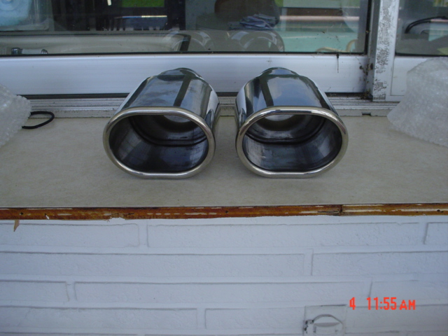 I got these back when i was planning on changing my exhaust yet use the same looking tip I and selling them for 20.00 ea+ 15.00 shipping including to Canada.,, they look 90% like the stock ones. they are inlet 2.5" out let is 2 3/4x3 3/4 oval, length on top they are 9" long on bottom 8" you can see in the pic they are new. they are stainless steel . jim