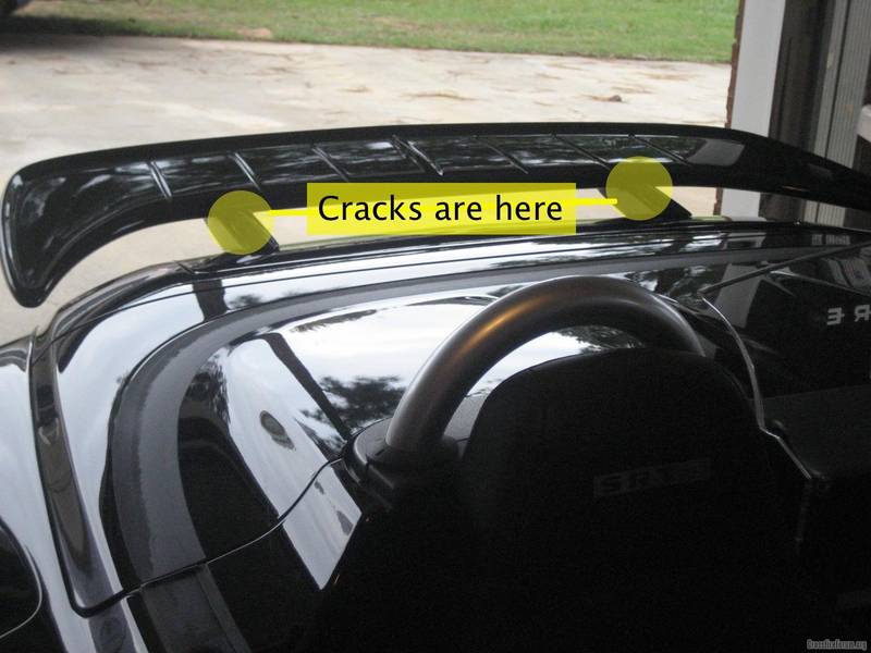 The ones that have cracks are generally where the spoiler upright post meets the wing. Maybe this pic will help you when you look at yours. I know this pic is close up, but I hope you can tell from it where the crack is located in reference to the wing.