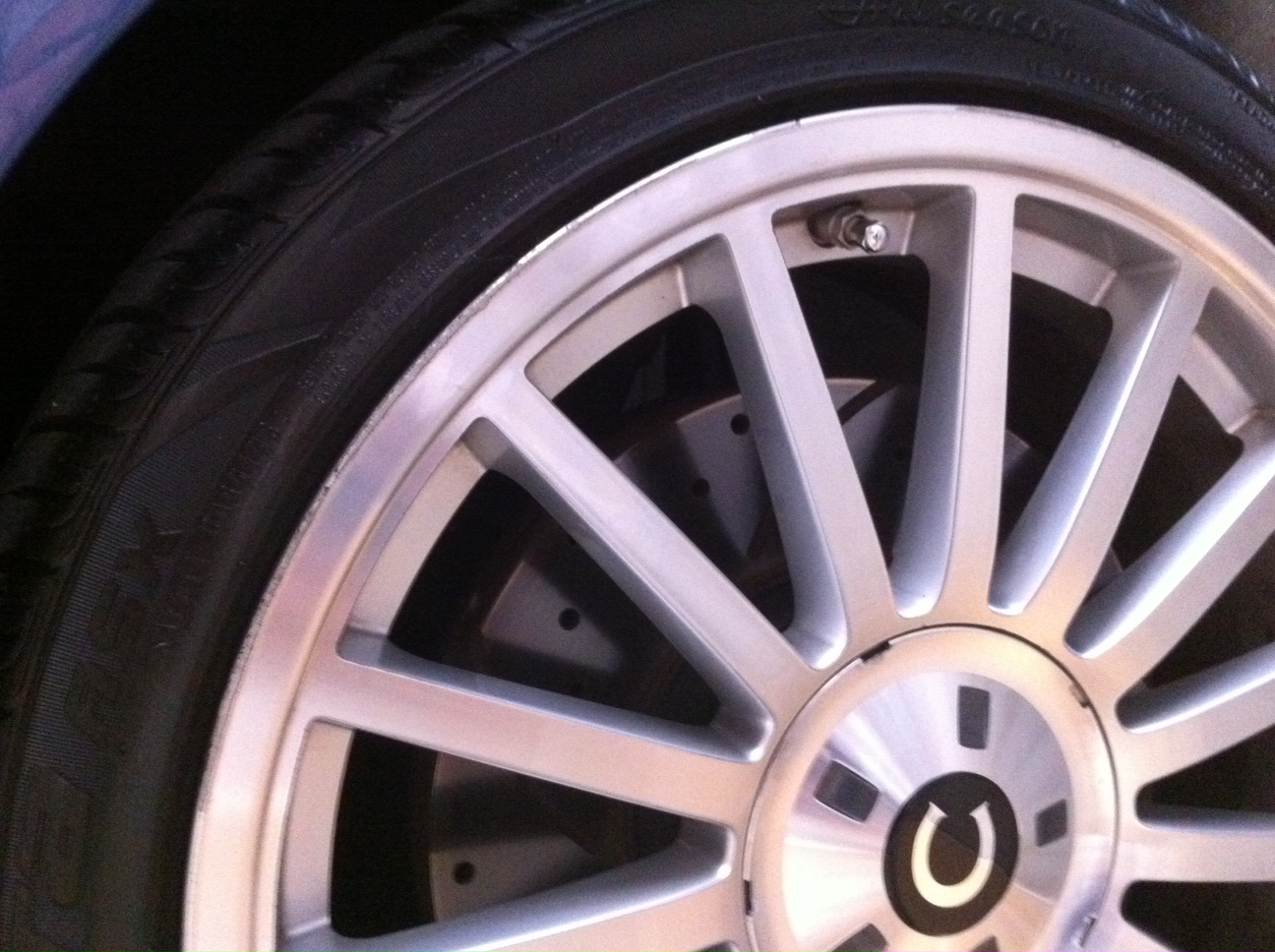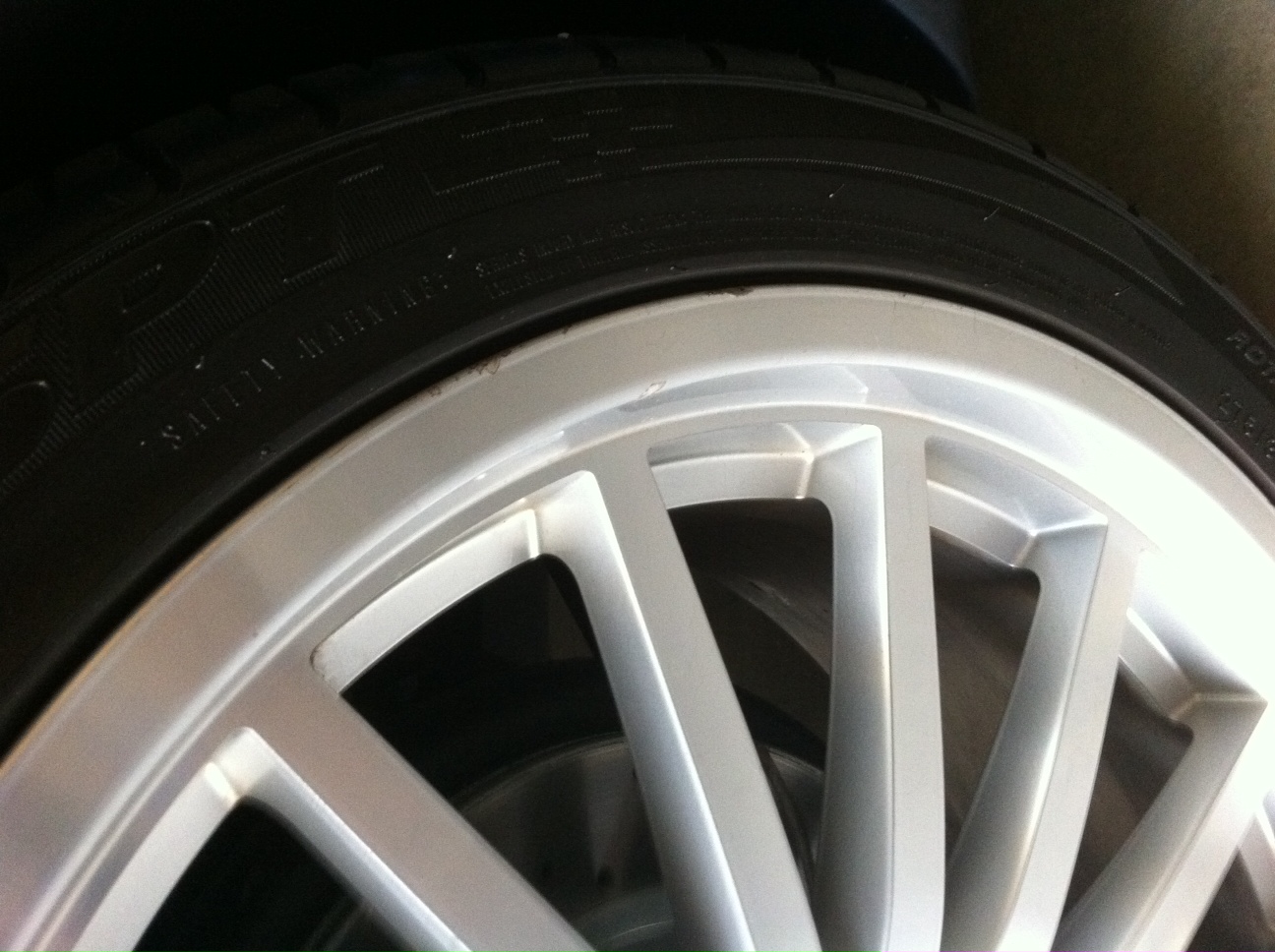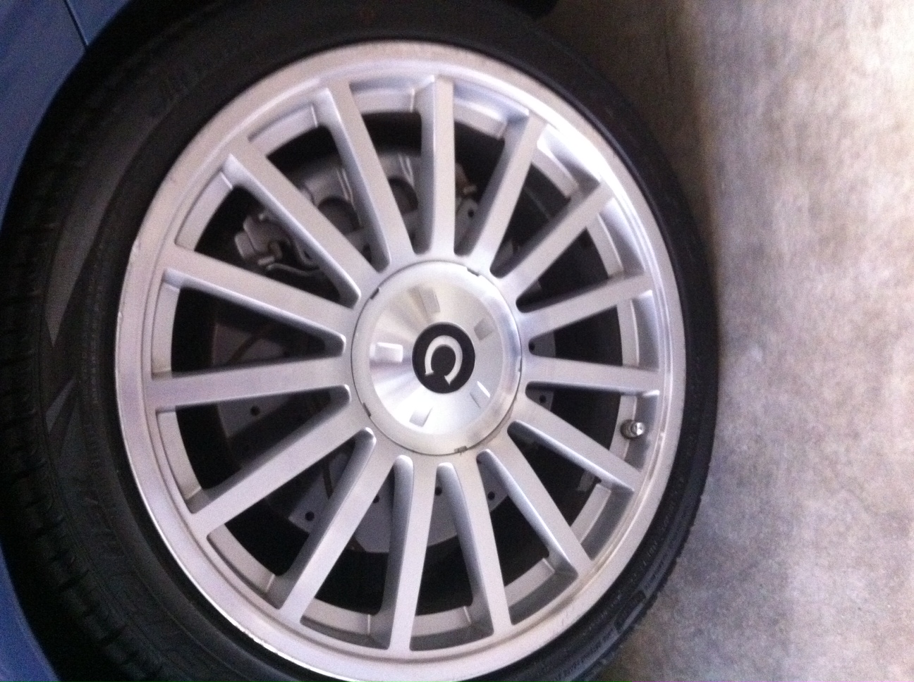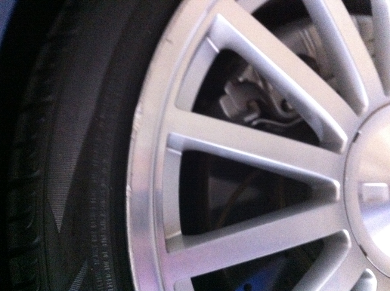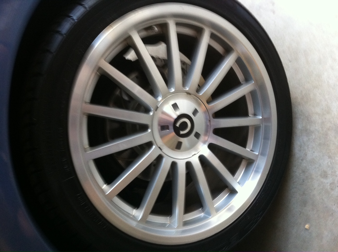 Here are the pics. Sorry my computer is acting stupid I can't rotate the pics for some reason. Anyways, the back rear rims are in good condition with just some tiny minor curb rash. The fronts do have some curb rash, but like I said its not really noticeable from away, but can easily be fixed. The front passenger wheel cap has some fading to it.