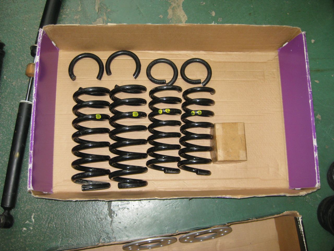 I will include a selection of spring pads with the cut springs. The fronts were perfect with dot 5 pads (included) the rears with dot 4 pads. Any questions?
