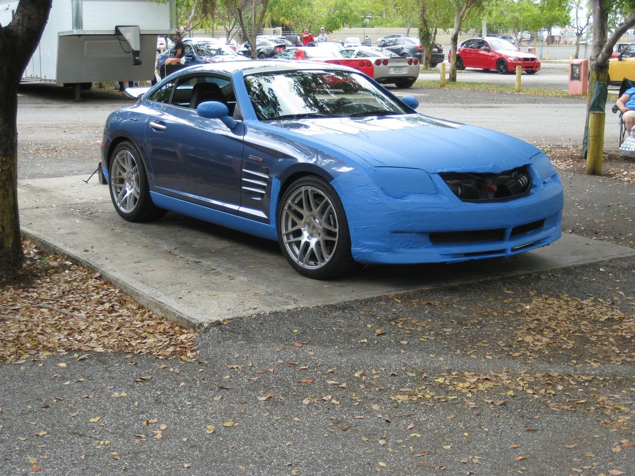 As far as I know they were re valved around the stock SRT-6 springs. I switched to Eibachs from the stock springs and didn't like the combination from a performance point of view. The combination was much better with the stock springs. So I took the Eibachs off, cut my stock springs and the combination was excellent again. I didn't do much research or ask too many questions before I bought them. ACRucrazy told me the re valving cost almost as much as the shocks. I did look up Lee Grimes and his name came up in the SCCA Forums, NASA Forums, Grassroots Forums etc. He seemed to be "the man" to send your Koni's to for a racing re valve. Heres a picture from the track with Dot 4 pads in the rear and dot 5 in the front with the cut SRT springs and Koni's. The car sat around 5 1/4" just in front of the rear wheel, and 5 1/4" behind the front wheel. (ground to bottom of the rocker panel) The car was lowered even more but I had more rubbing in the front than I was comfortable with and problems with the sway bar in the rear. The car can go lower if your willing to take a hammer to the bulge in the inside front of the front fender and clearance the frame in the rear to give the rear sway bar more upwards travel.