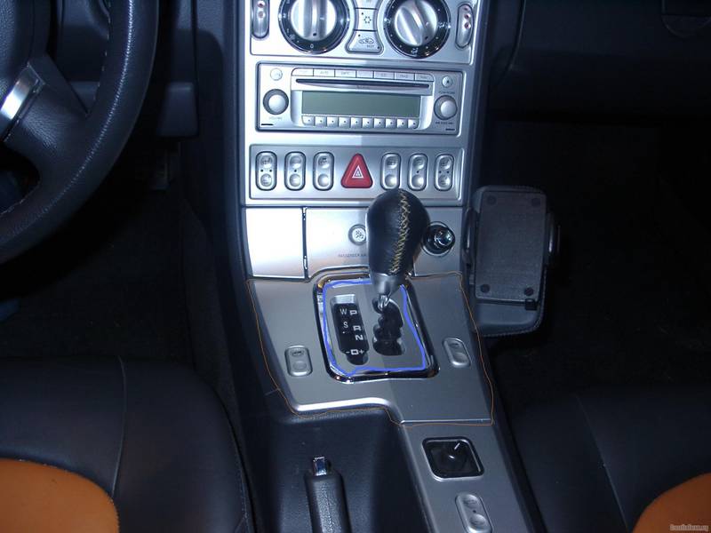 I am an installer who unfortunately broken the shifter trim piece on a customers '04 Crossfire. It was silver, not chrome. In the picture below the piece I am looking for is outlined in BLUE.