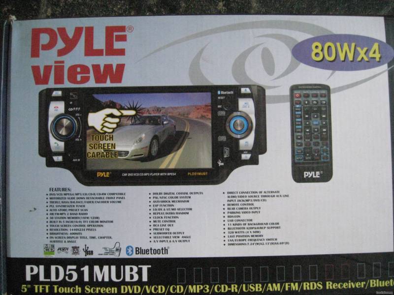 For sale Pyle 5" dvd single din for our cars it has. Bluetooth, Bluetooth music,Touch screen, Input for rear cam,Outputs for extra amp,Remote,Case for screen. Screen can be changed 11 different colors. $100.00 + Shipping