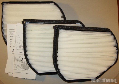 Three new, made in Germany, micronAir cabin air filters and instruction sheets. The filter are actually whiter -- colors are odd in the picture.