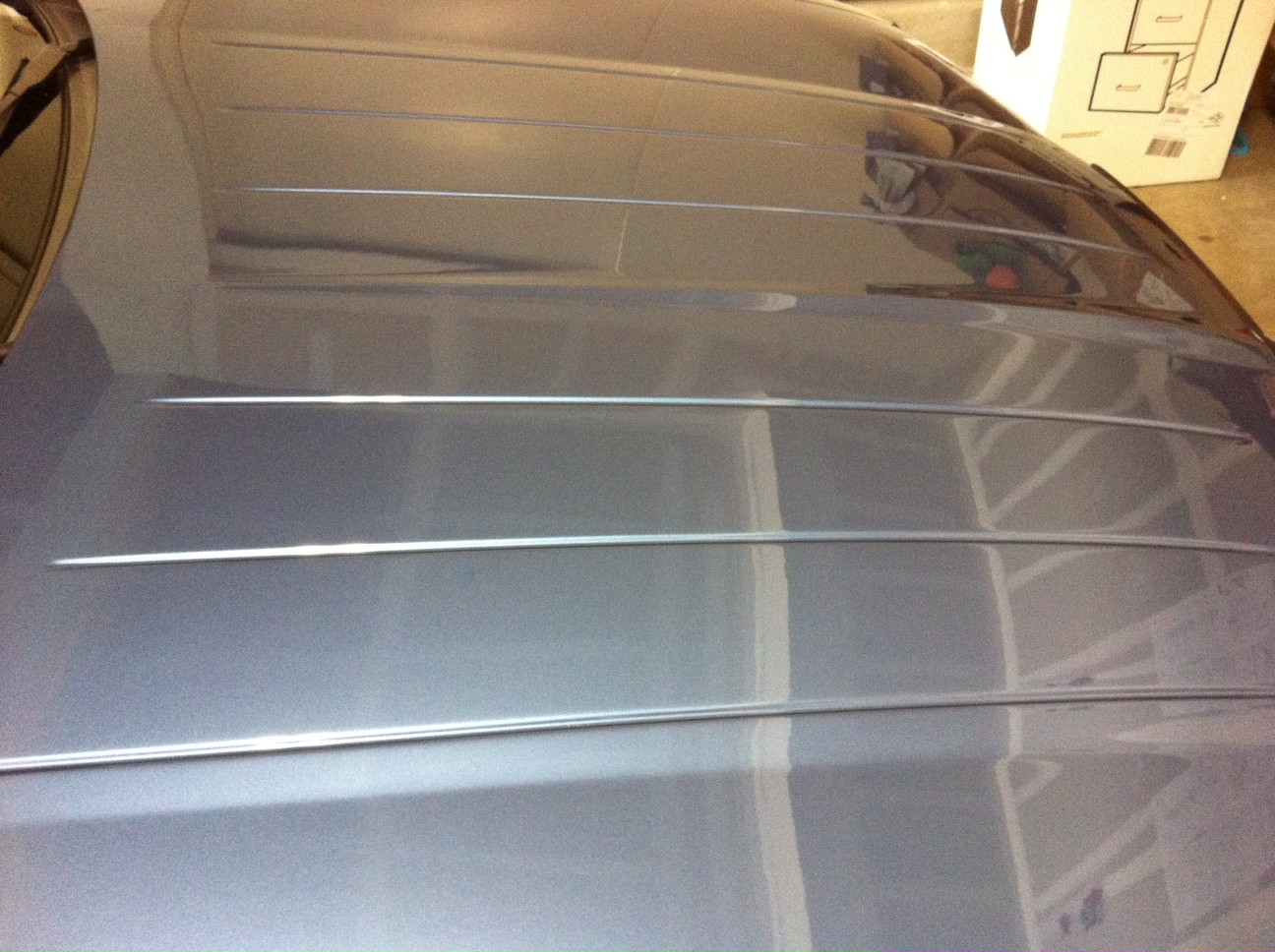 This is what your grill looks like now. It's just a base coat. Special ordering alabaster paint is taking a long time, but should be here next week along with a clear coat so it will totally match the car. Also as recommnded left the front trim silver still.