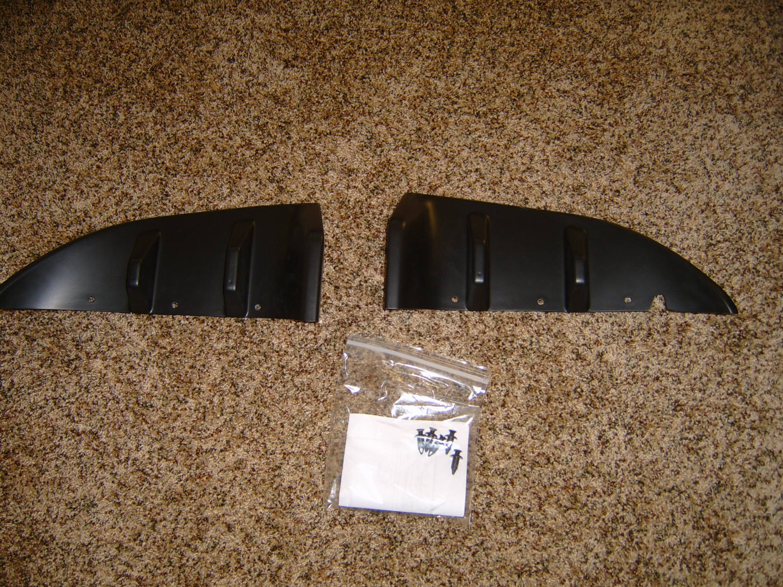 I know that there has been quite a few members wanting these. I did finally receive the Rear Fascia Panels from hotcaraccessories.com that I originally order from their ebay listing that was delayed about three weeks. These are not the original Mopar Panels made out of plastic. They used an original to make a mold to have fiberglass reproductions made in China. Actually, they turned out looking fairly good and I could have made them work. However I returned them for some of the following reasons: