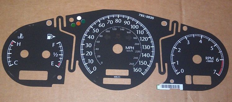 I have an EXTRA gauge face overlay from a Limited Crossfire... perfect if you're wanting to experiment with changing the color behind your gauges, BUT you don't want to risk ruining your OEM gauges in the process of 'practicing'.... This is a zero-risk way to play with the gauge color mod.