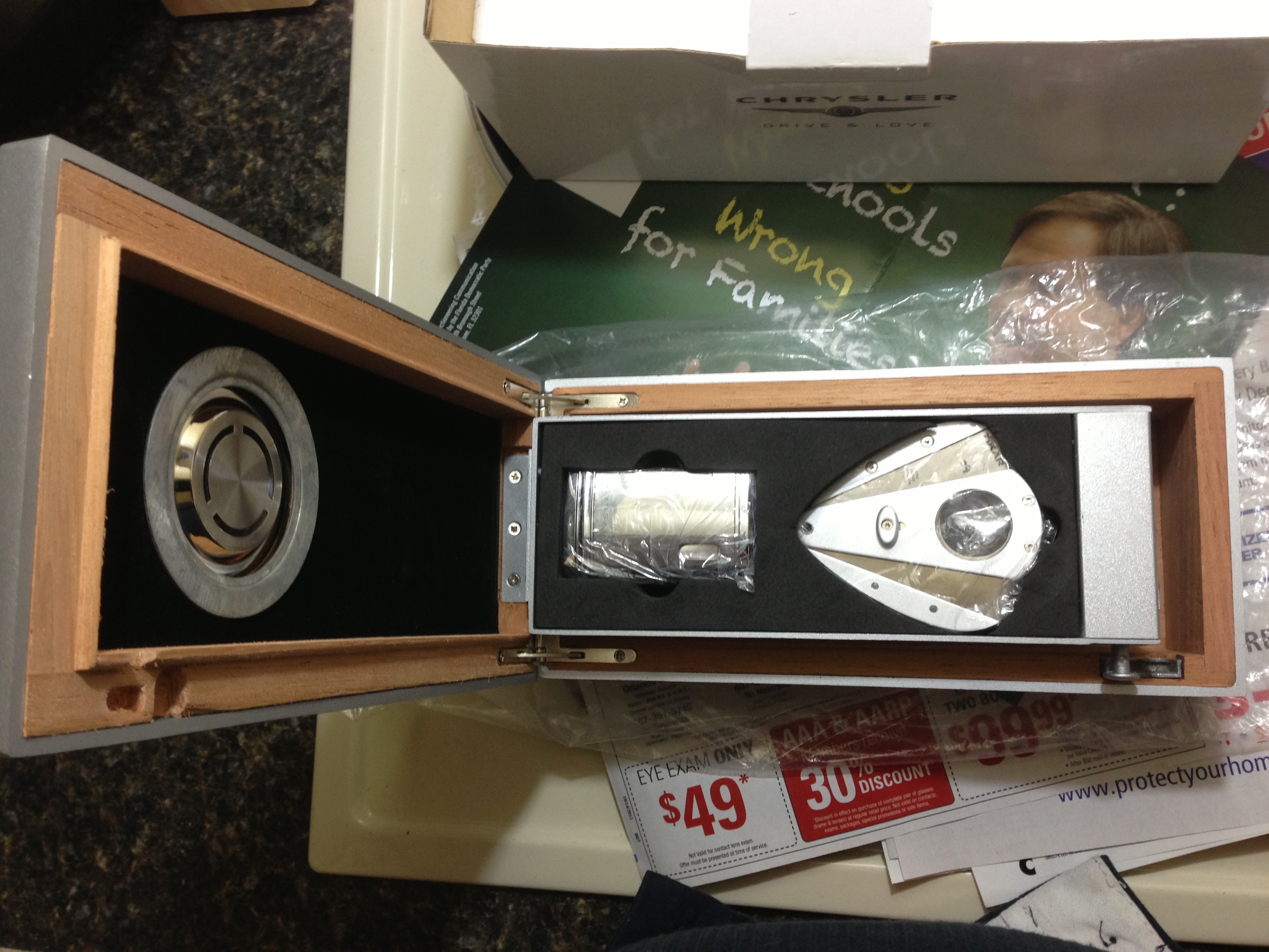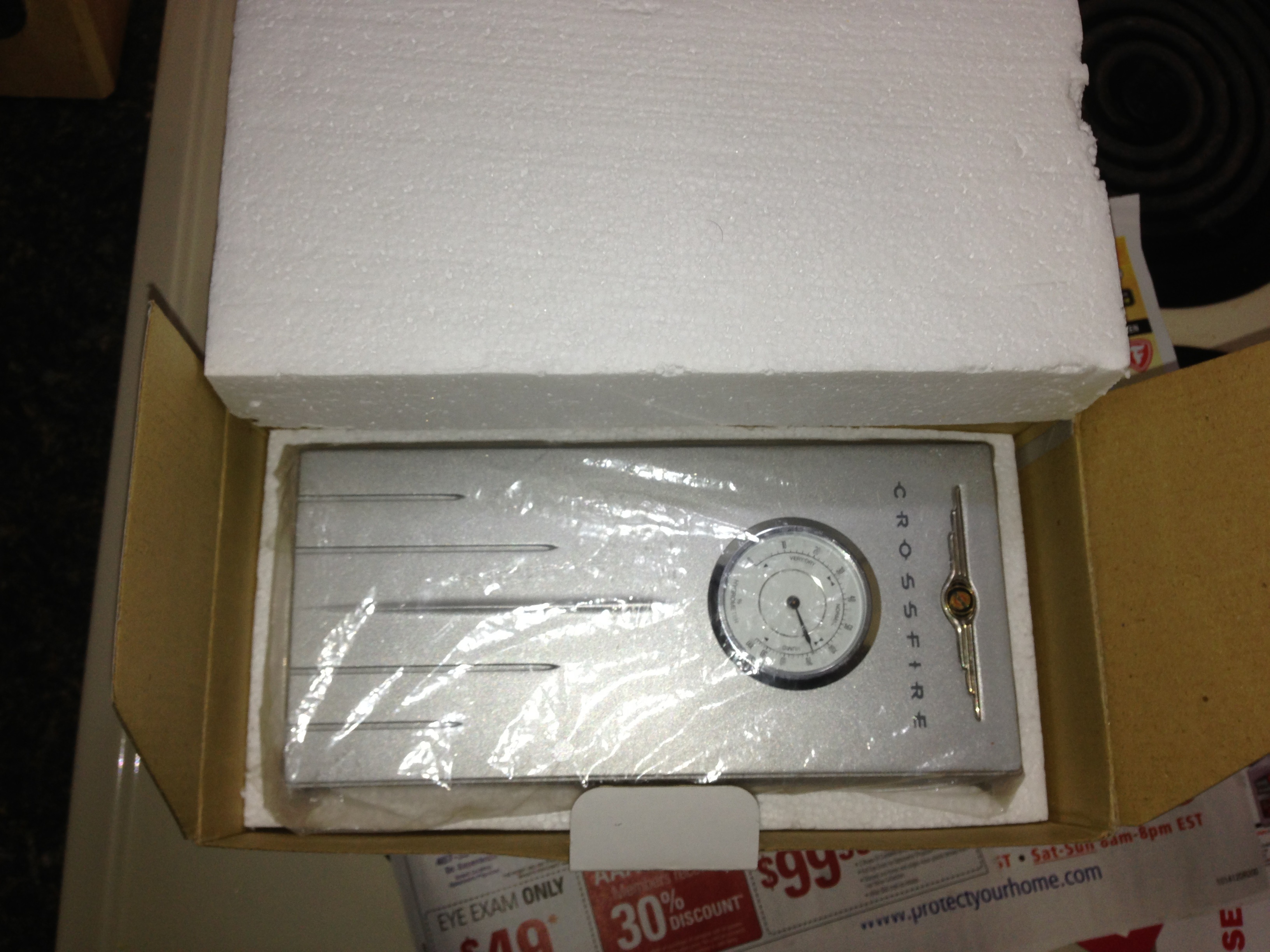 I took some pics to show a true "NEW IN BOX" humidor, with all of the factory plastic. Mine came from danimal, who only took it out once for a car show, same as I have done.