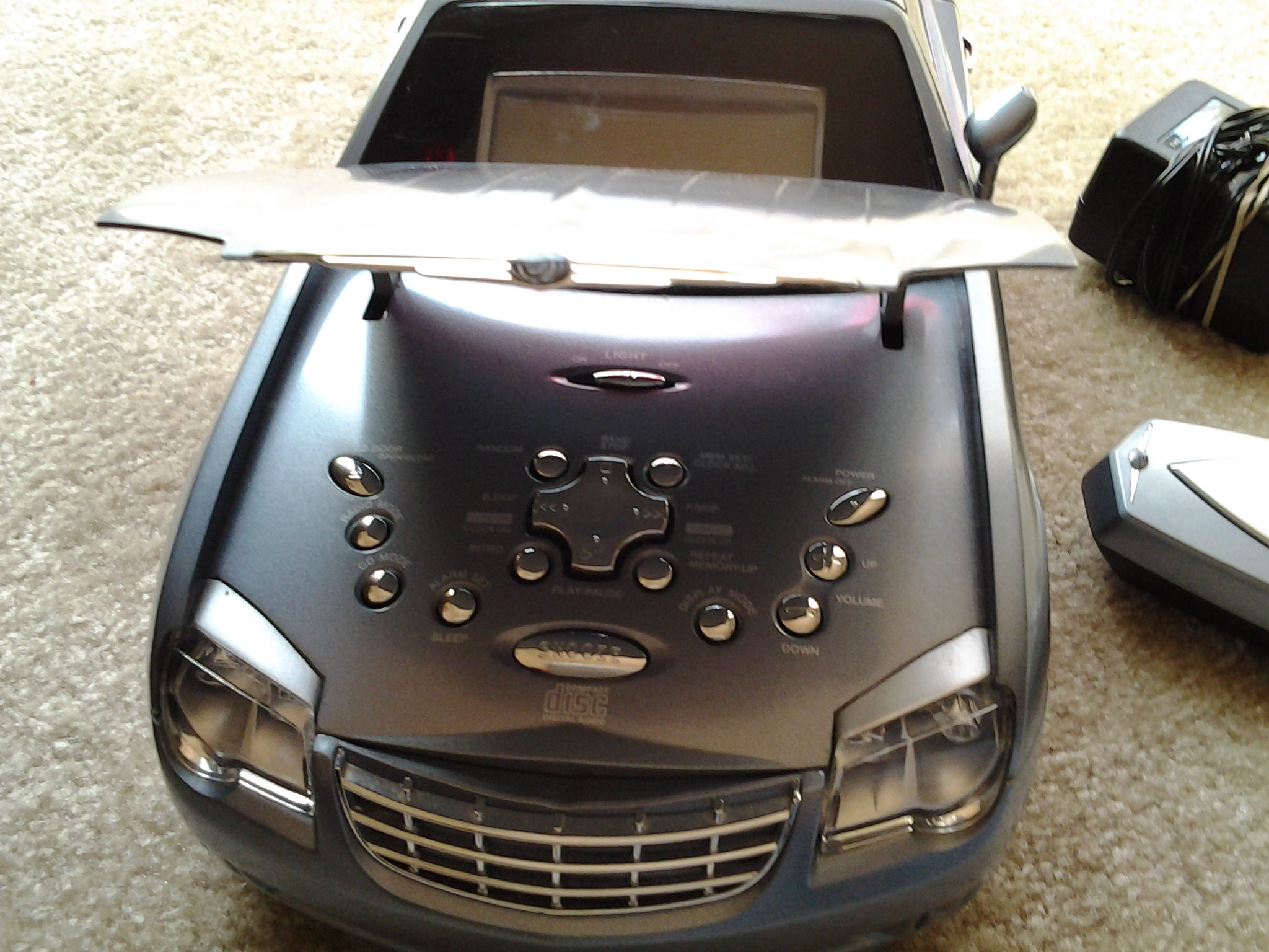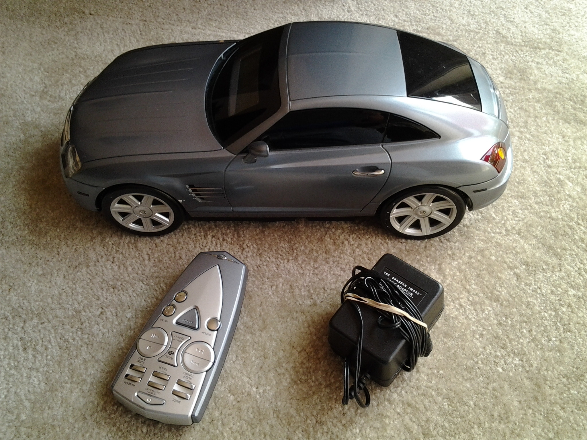 I have a rare chrysler crossfire alarm clock-fm radio- cd player car bythe sharper image.comes with remote and ac adapter!! Sorry no box.please email if interested or photos