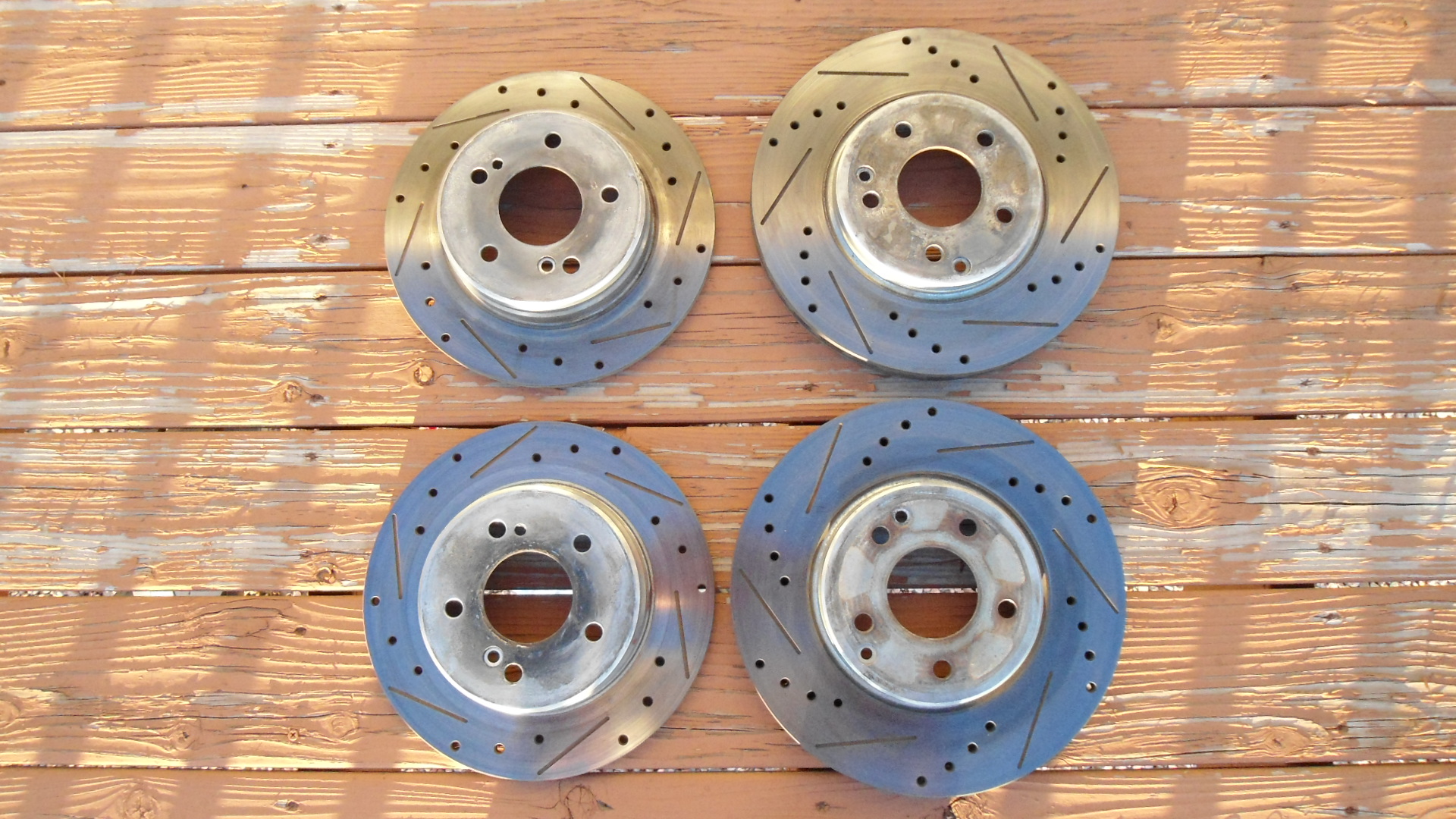These are take off from my car since I went the Big Caliper route. I'm offering F&R Rotex Gold brake pads 85% left (I think). Also, front Brembo caliper covers (3 one is spare) that fit the NA limited. I have front SS lines brand new as well, used front calipers (40K miles), F&R power slot drilled and slotted rotors (7k miles) with little wear but the non friction areas were getting a bit ugly for my car shows. Anyways contact me about these. I'm looking for offers and prefer to sell face face to face in Colorado Springs.