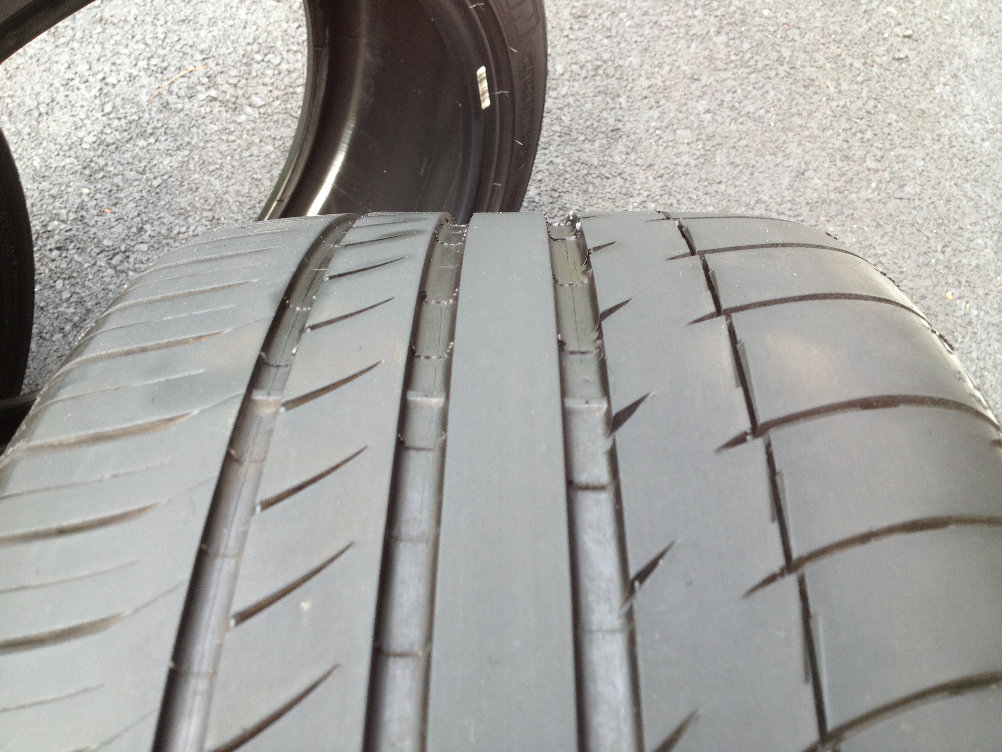 I've replaced my original Michelin PS2 tires on my SRT6 and have 3 of the original tires for sale. There are (2) 225-40-18 and (1) 255-35-19 in exellent condition with 7/32 tread remaining. When new, the tires had 10/32 tread depth, so there is more than half tread life remaining. There are NO plugs or patches on these tires. Attached are some pictures of the tires for sale. I would prefer a local pickup, since the cost of shipping FedEx ground would be approximately $20-$25 each. I am located in Southeastern Pennsylvania. Looking for $100/each.